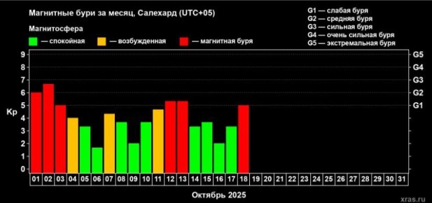 В октябре уже были зафиксированы две магнитные бури: первая прошла с 1 по 3 октября, а вторая — 12 октября.По прогнозам Лаборатории солнечной астрономии ИКИ РАН, геомагнитная обстановка стабилизируется к...