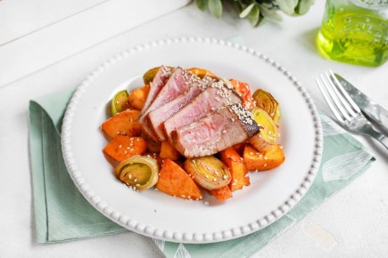 Удивительное сочетание рыбы и овощей подарит вам истинное гастрономическое наслаждение. Стейк из тунца, приготовленный в ароматном апельсиновом маринаде, идеально дополнится запеченной тыквой и луком-пореем. Это блюдо не только порадует вас на...