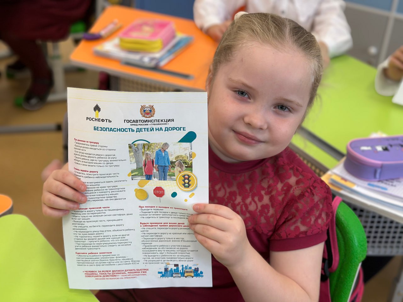 Завершилось мероприятие вручением специальных памяток по безопасности дорожного движения, разработанных совместно с компанией «РН-Транспорт». Эти материалы помогут детям закрепить полученные знания и применять их в повседневной жизни, делая их передвижение по городу более безопасным.