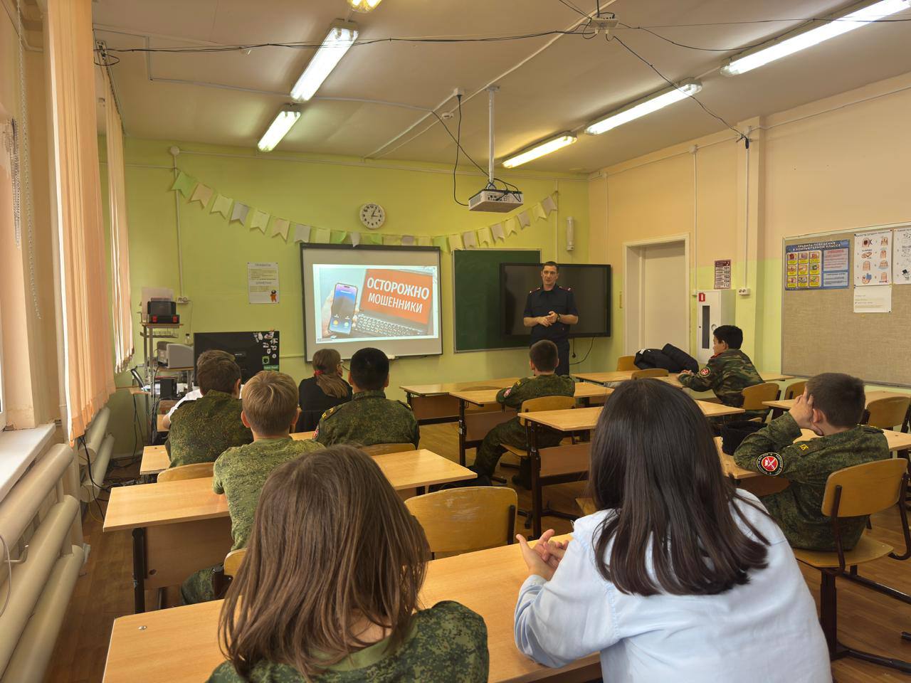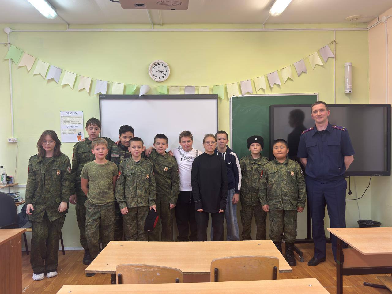 3 октября 2025 года старший следователь следственного управления Юрий Алексеевич Дряхлов провел тематический урок с семиклассниками кадетско-казачьего класса средней школы №6 г. Салехард, посвященный вовлечению молодежи в преступные сообщества через Интернет.