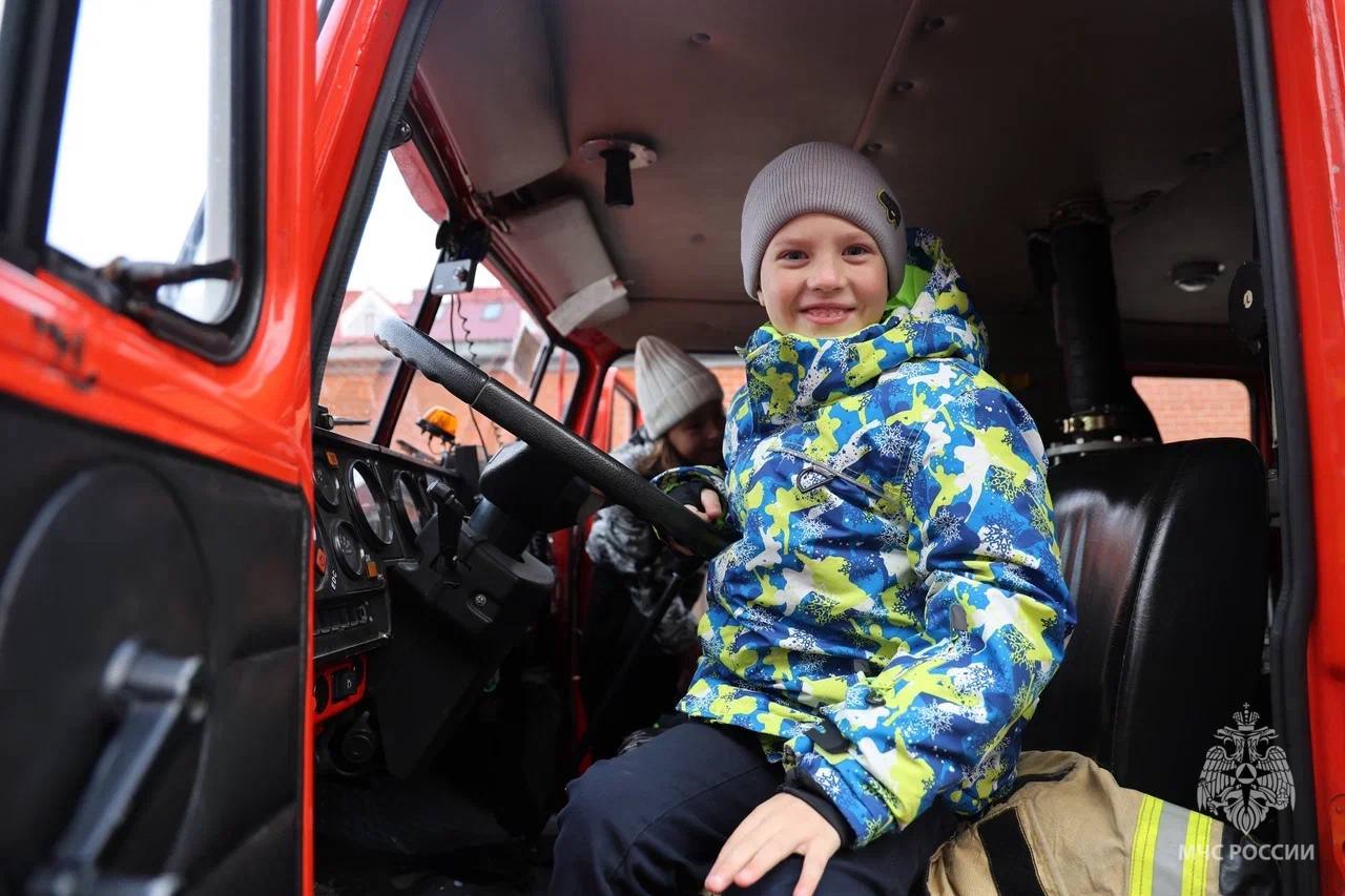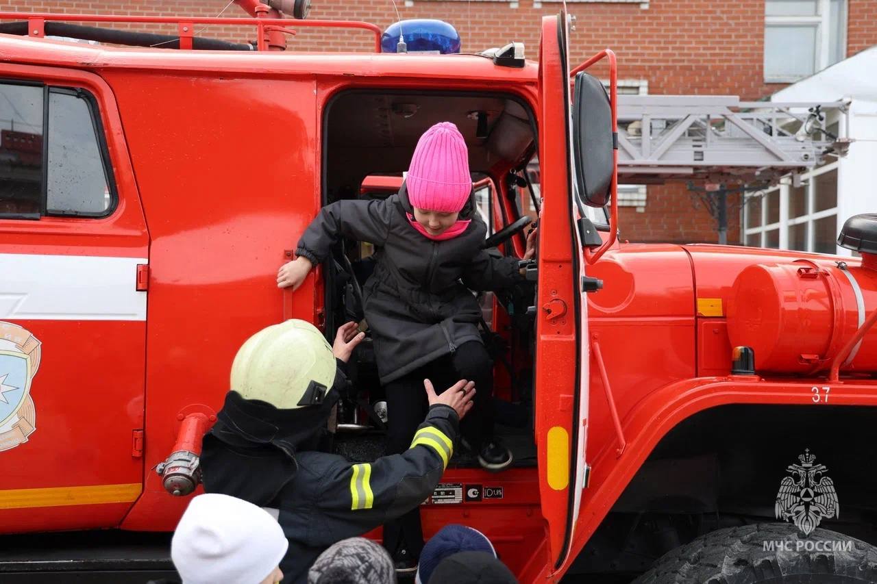 Пожарные и спасатели с удовольствием делились секретами своей работы, а ребята могли посидеть в кабине пожарного автомобиля, примерить каску, подержать в руках специальное оборудование и, конечно, задать сотни вопросов тем, кто ежедневно спешит на помощь.