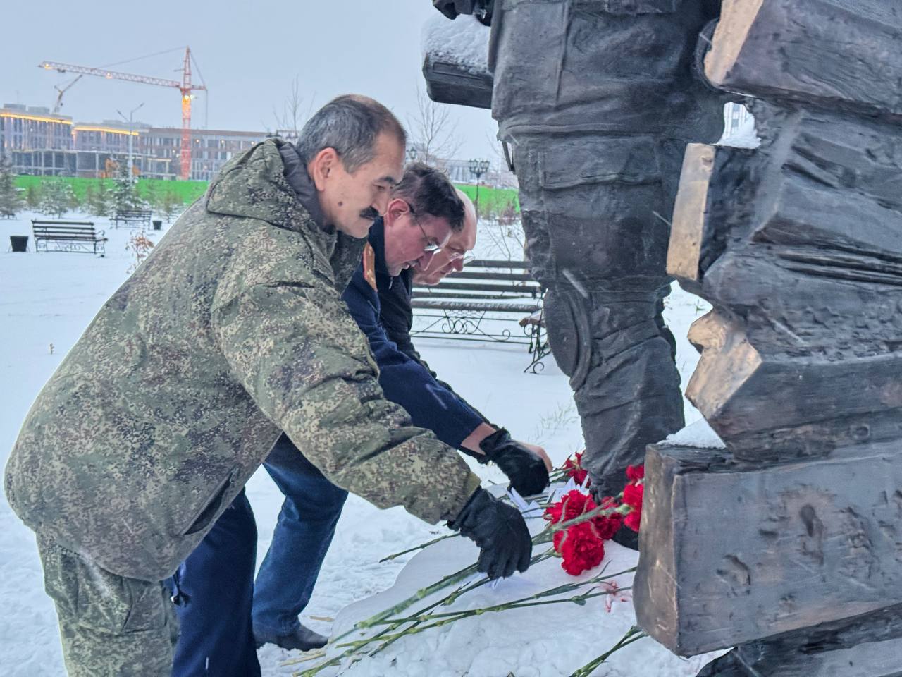 Завершающим этапом стало торжественное возложение всеми участниками патриотической встречи цветов и символов акции - белых журавлей на Пантеоне города Салехарда.