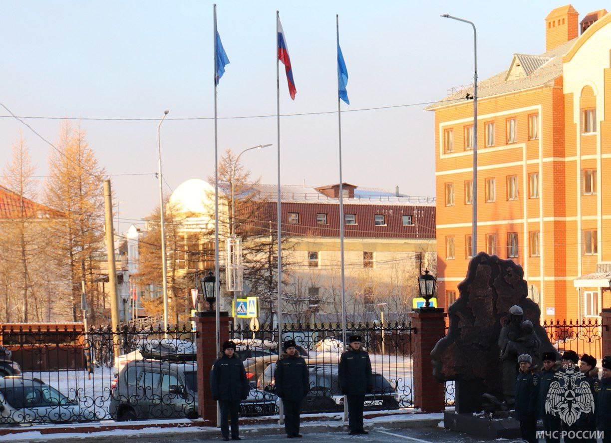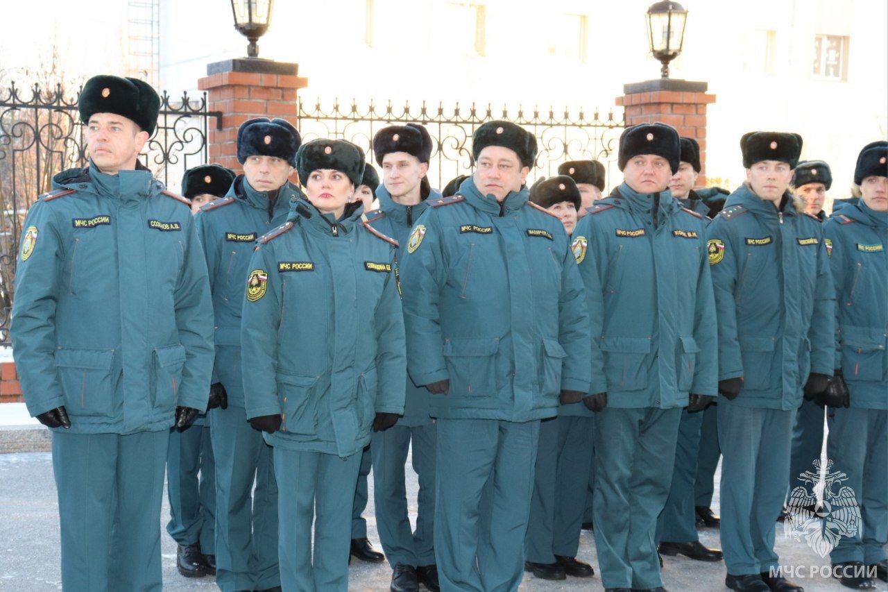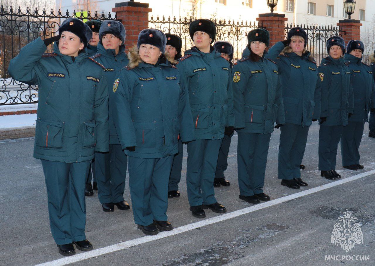Новая рабочая неделя у ямальских спасателей началась традиционно с построения под Гимн Российской Федерации и поднятия флагов России, МЧС России и Ямала.