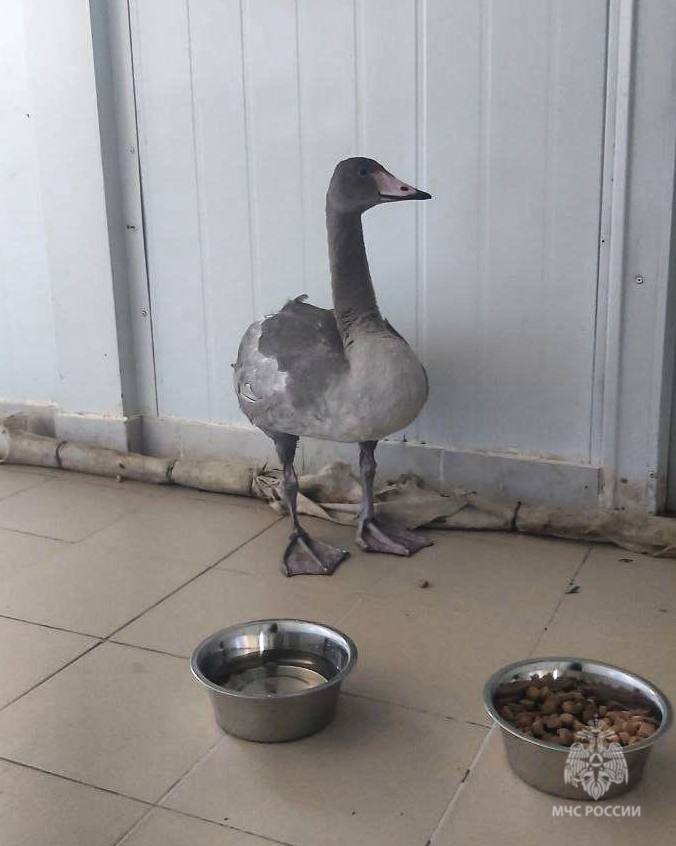 Прибыв на место специалисты обнаружили пухового птенца лебедя-кликуна, который отбился о стаи и нуждается в помощи людей.