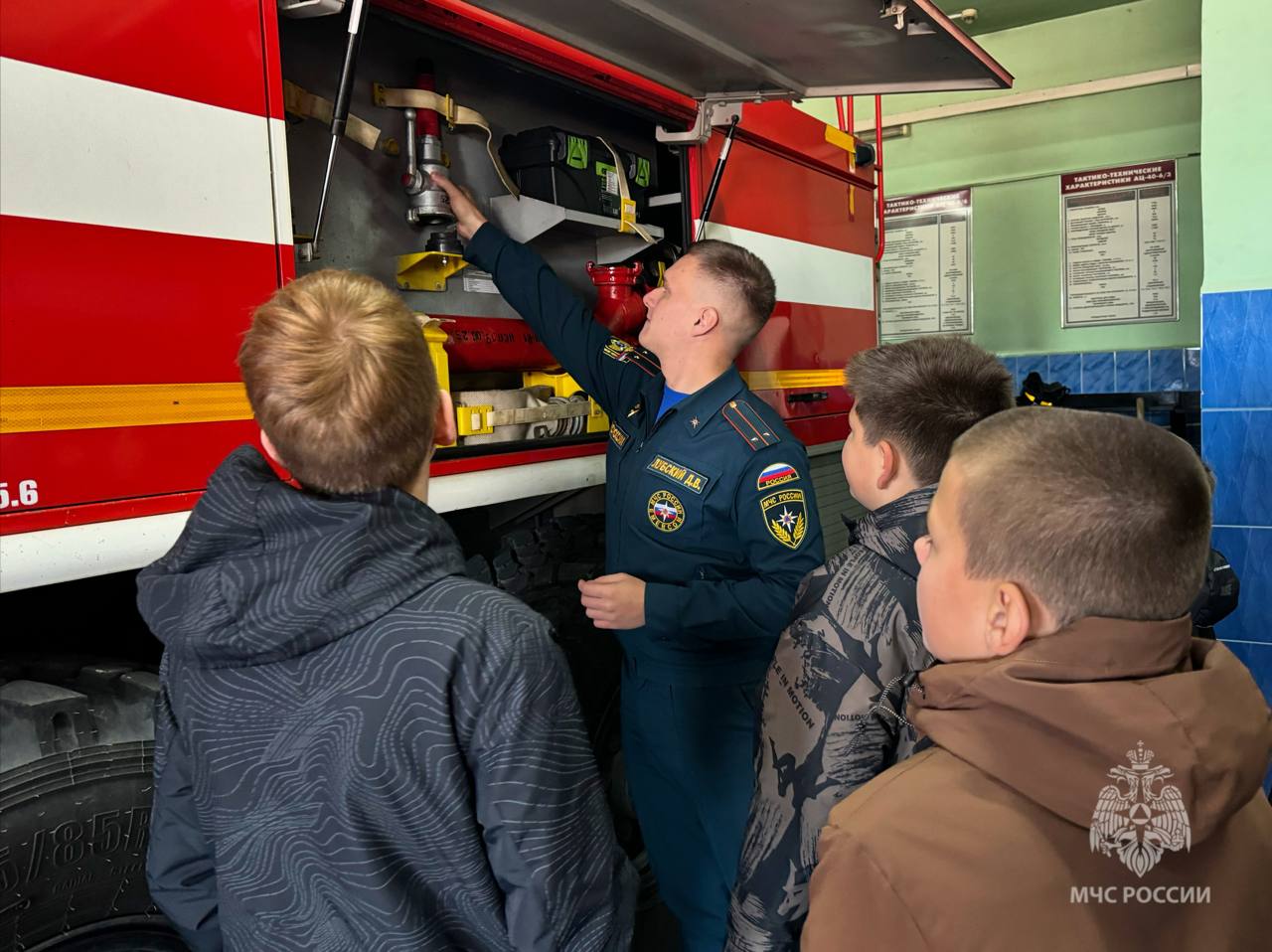 Очередное занятие для ребят прошло на базе пожарной части. Дмитрий Васильевич доступно и интересно рассказал о самом важном. Он напомнил правила пожарной безопасности, рассказал о тактико-технических характеристиках специального оборудования и показал, как устроены спасательные автомобили.
