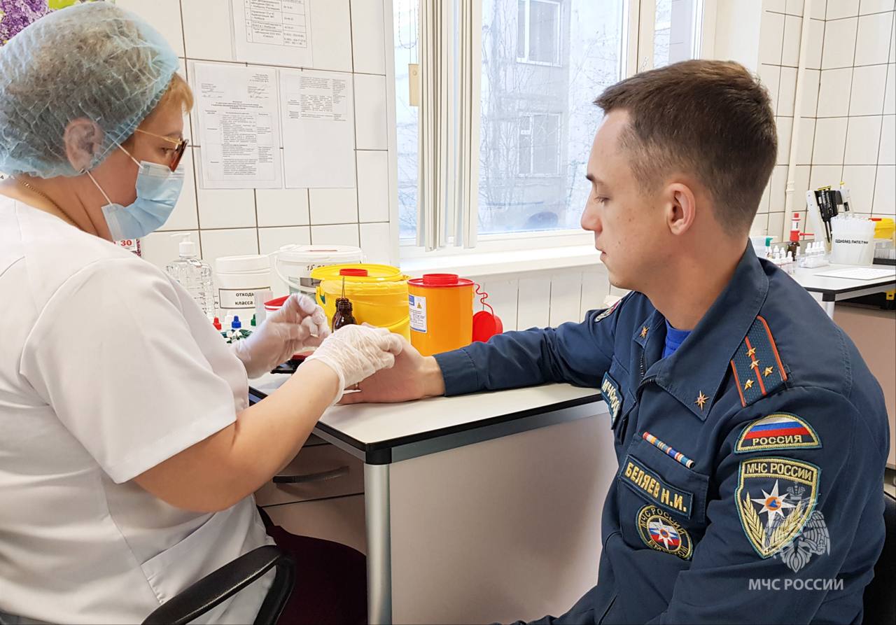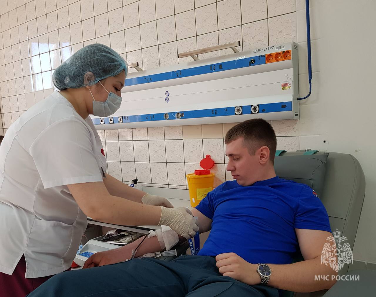 Ноябрьские огнеборцы сдали кровь, присоединившись к масштабной акции в честь 35-летия МЧС России.