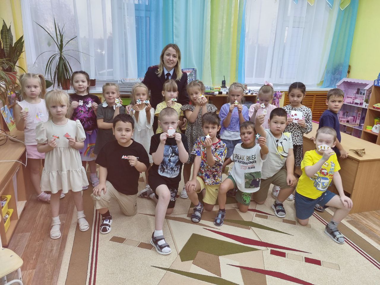 После творческой части инспекторы провели интерактивную беседу. Они напомнили детям основные Правила дорожного движения: как безопасно переходить дорогу, почему важно быть внимательным, а главное – подробно рассказали о необходимости использования световозвращателей. Малышам объяснили, что световозвращающие элементы делают пешехода заметным для водителей с большого расстояния, особенно в сумерках и темноте, существенно снижая риск дорожно-транспортных происшествий.