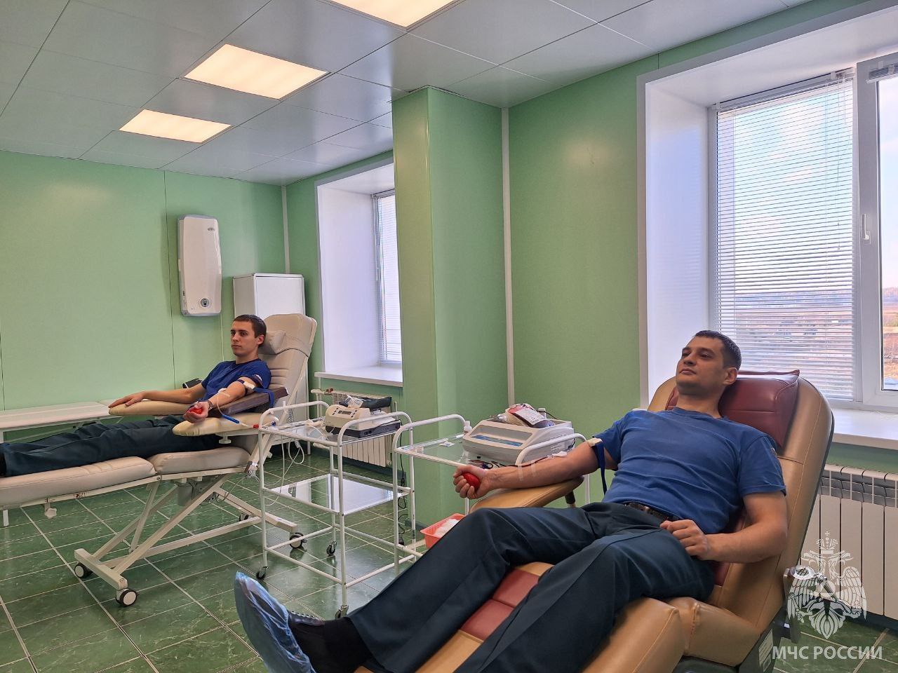 В рядах МЧС России есть и заслуженные доноры, и те, кто пришли сдавать кровь впервые.