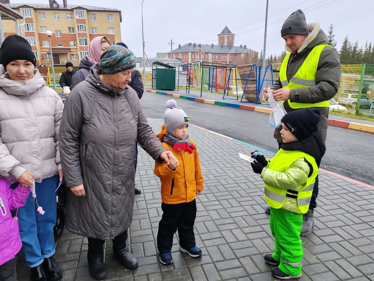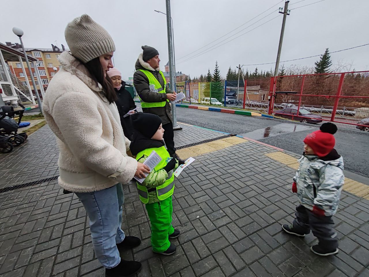 В Приуральском районе «Родительский патруль» напомнил о дорожной безопасности у детского сада «Солнышко».