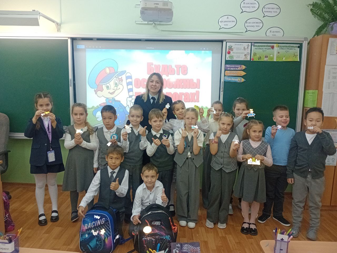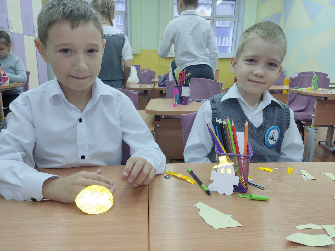 В рамках акции «Засветись! Стань заметнее на дороге!» сотрудники Госавтоинспекции провели познавательный мастер-класс для первоклассников Гимназии. Мероприятие было посвящено созданию собственных световозвращающих элементов.