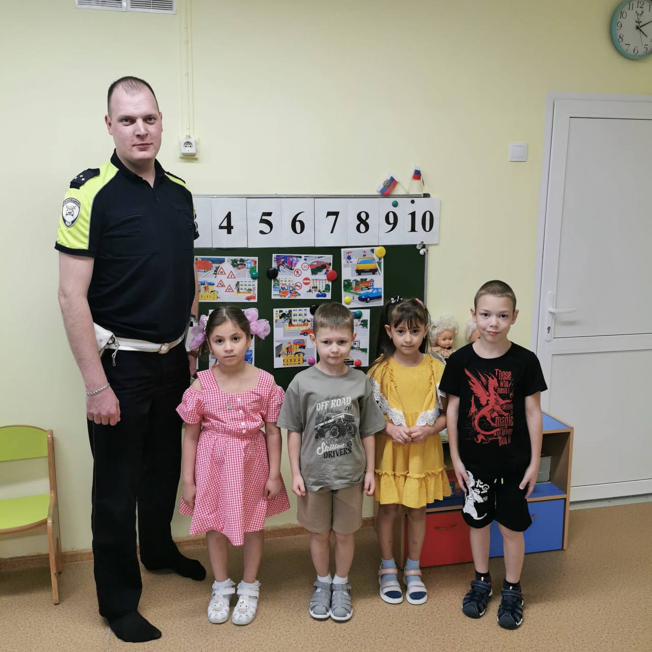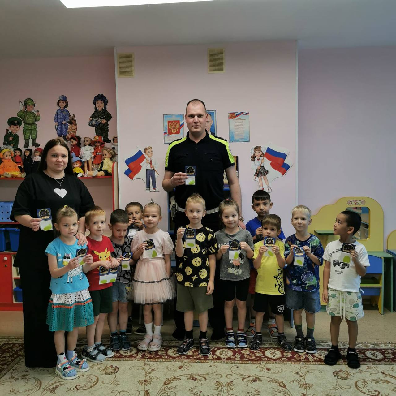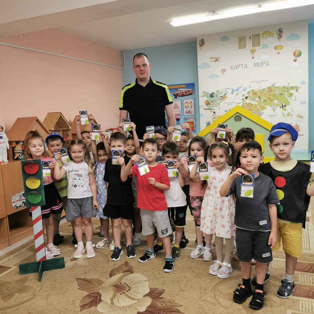 В игровой форме полицейские напомнили детям сигналы светофора и основные дорожные знаки, а также объяснили важность строгого соблюдения Правил дорожного движения для предотвращения опасных ситуаций на дороге. Особое внимание уделили правильному поведению при переходе проезжей части и обязательной необходимости использования световозвращающих элементов на одежде. Было подчеркнуто, что такой элемент — это реальный способ защитить ребёнка от травм в тёмное время суток и на плохо освещённых участках дороги.