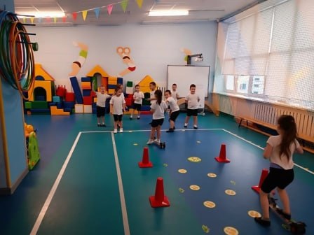 Команды должны были на самокатах проехать дистанцию, соблюдая при этом Правила дорожного движения, и по кусочкам собрать дорожный знак.