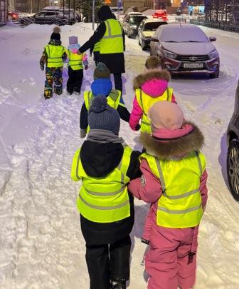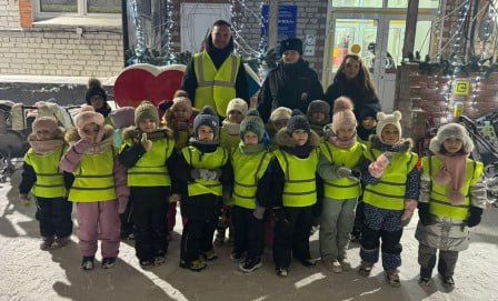 Новоуренгойские автоинспекторы провели «Шагающий автобус» для воспитанников детского сада «Журавушка».
