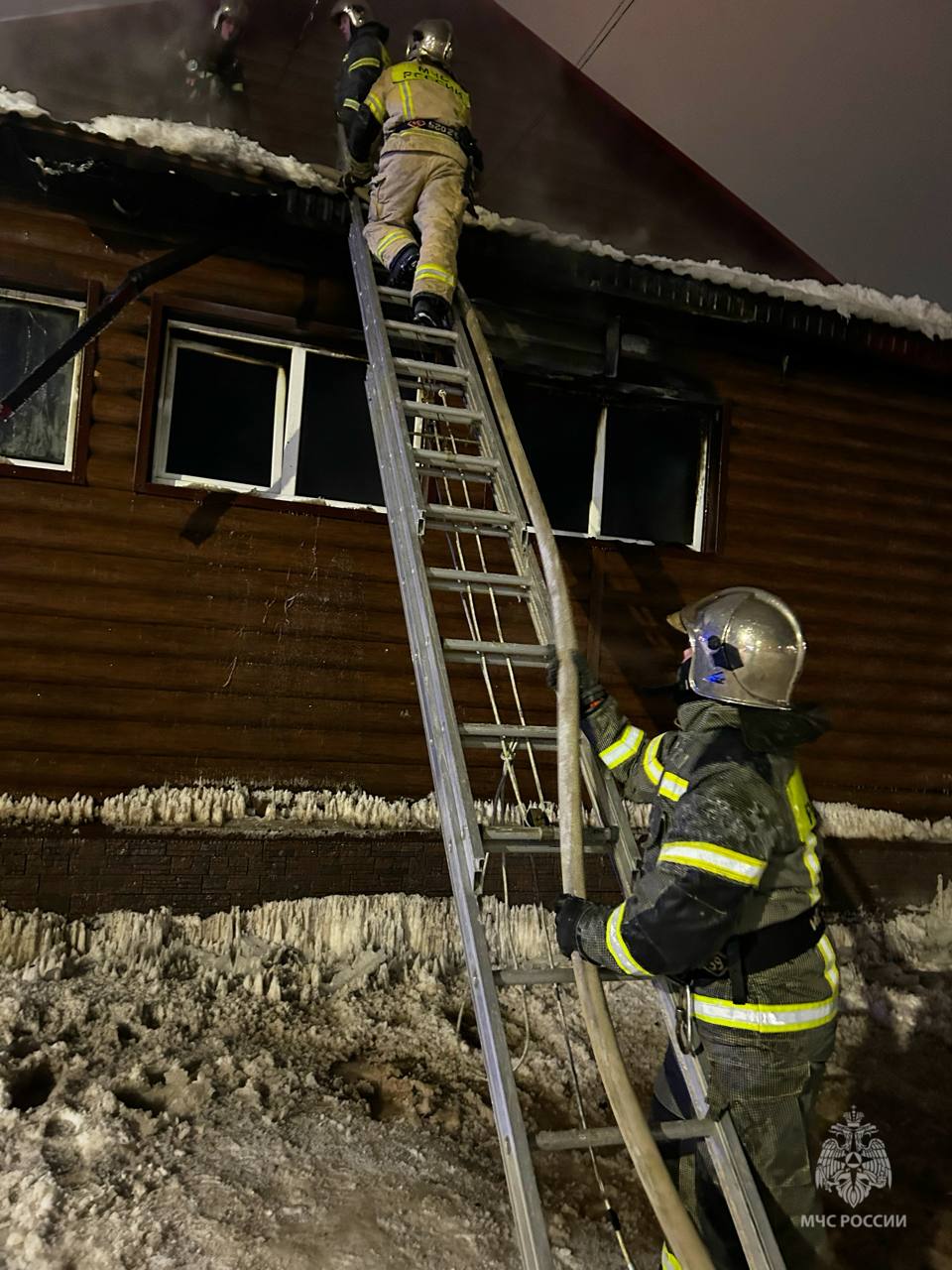 Через несколько минут пожарные подразделения были на месте вызова. На момент прибытия наблюдалось горение помещения тамбура и кровли ориентировочно на площади 20 квадратных метров.