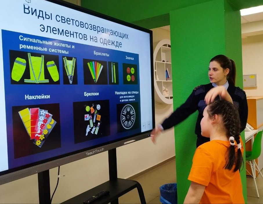 В завершение полицейские продемонстрировали различные световозвращающие элементы на одежде, которые пешеходам рекомендуется использовать в тёмное время суток.