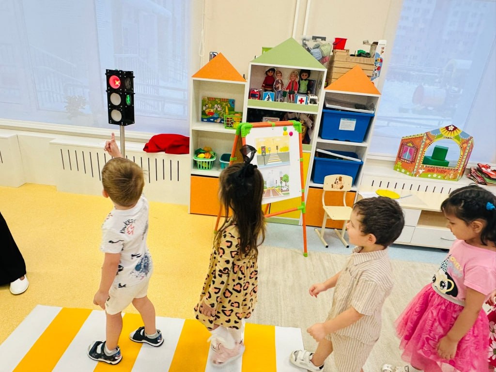 В начале мероприятия малышам напомнили о важности соблюдения правил перехода дороги и поведения на улице.