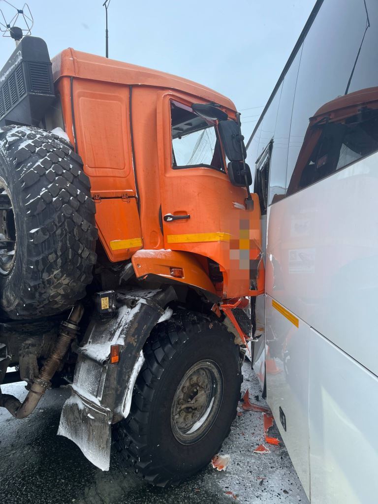 По предварительной информации установлено, что 29.12.2025 г., около 11 часов 19 минут, в районе панели 1/2 проезда 2 промзоны г. Ноябрьска, водитель автобуса «Higer», при повороте налево, совершил столкновение с движущимся во встречном направлении грузовым автомобилем «Камаз».