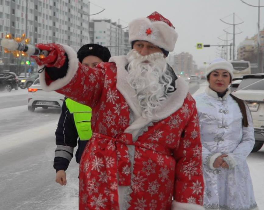Полицейский Дед Мороз поздравил с наступающим Новым годом Новоуренгойских автолюбителей.