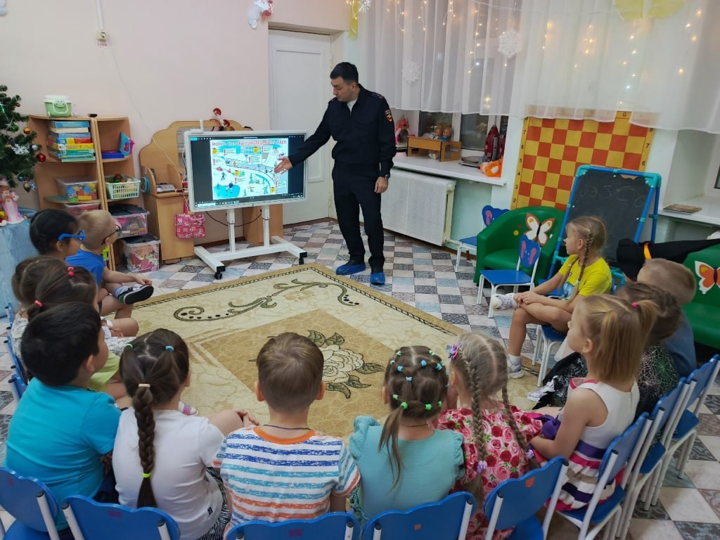 Кроме того, дети совместно с инспекторами разобрали значение сигналов светофора и дорожных знаков, обсудили поведение пешеходов около дорог, правила перехода через проезжую часть и меры предосторожности возле припаркованных автомобилей.