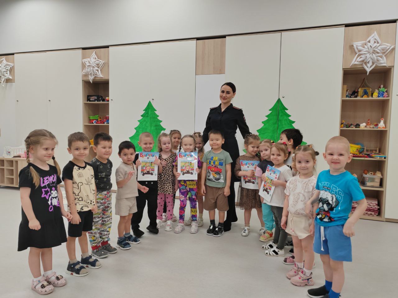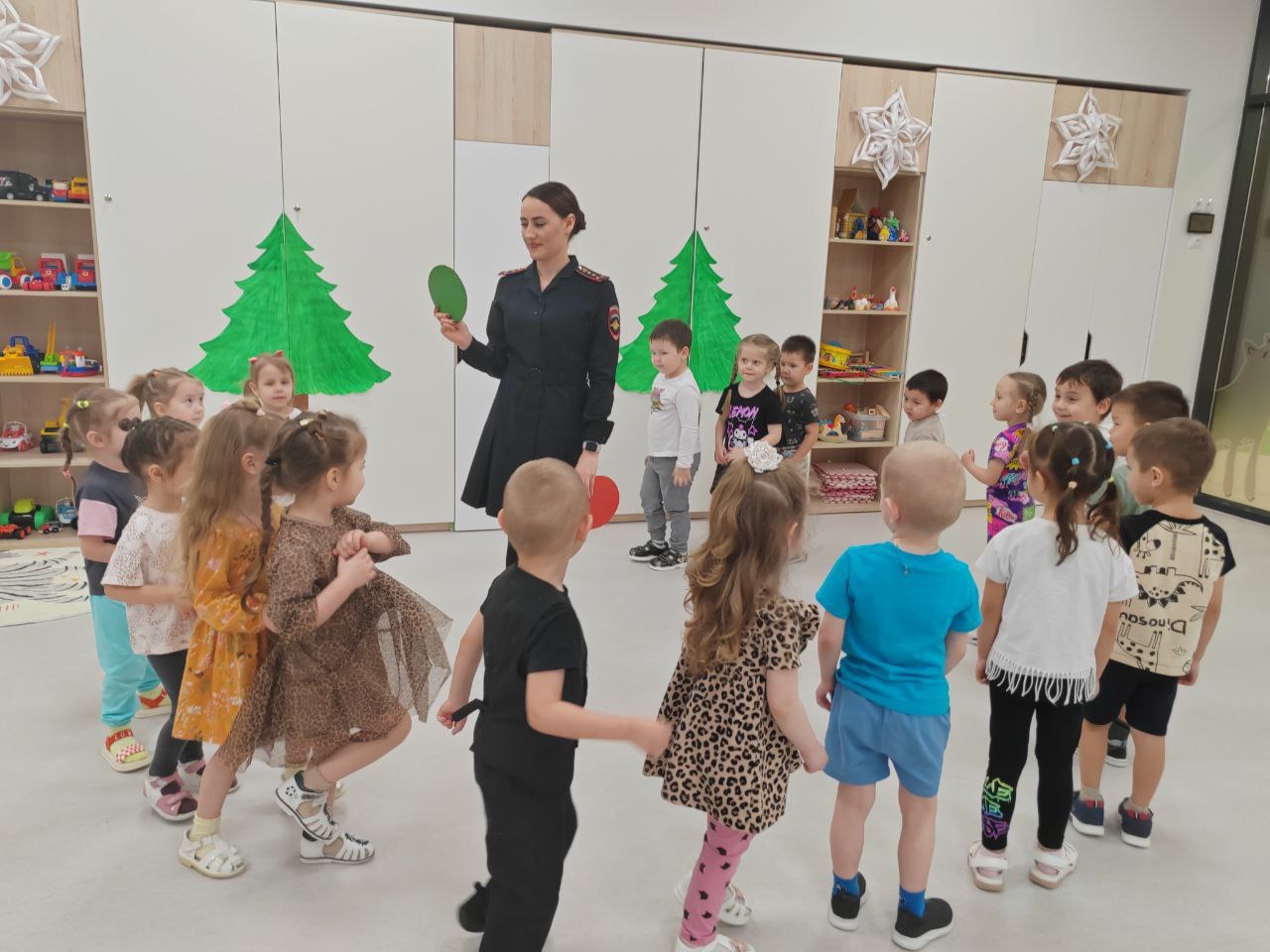 15 января сотрудники Госавтоинспекции посетили детский сад «Новатория» и провели для воспитанников увлекательное занятие «Юные пешеходы» по безопасности дорожного движения. В игровой форме малышам рассказали об основных правилах ПДД, а интерактивная игра «Красный, желтый, зеленый» помогла наглядно запомнить сигналы светофора.