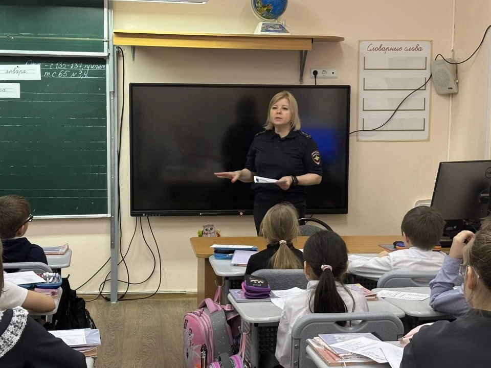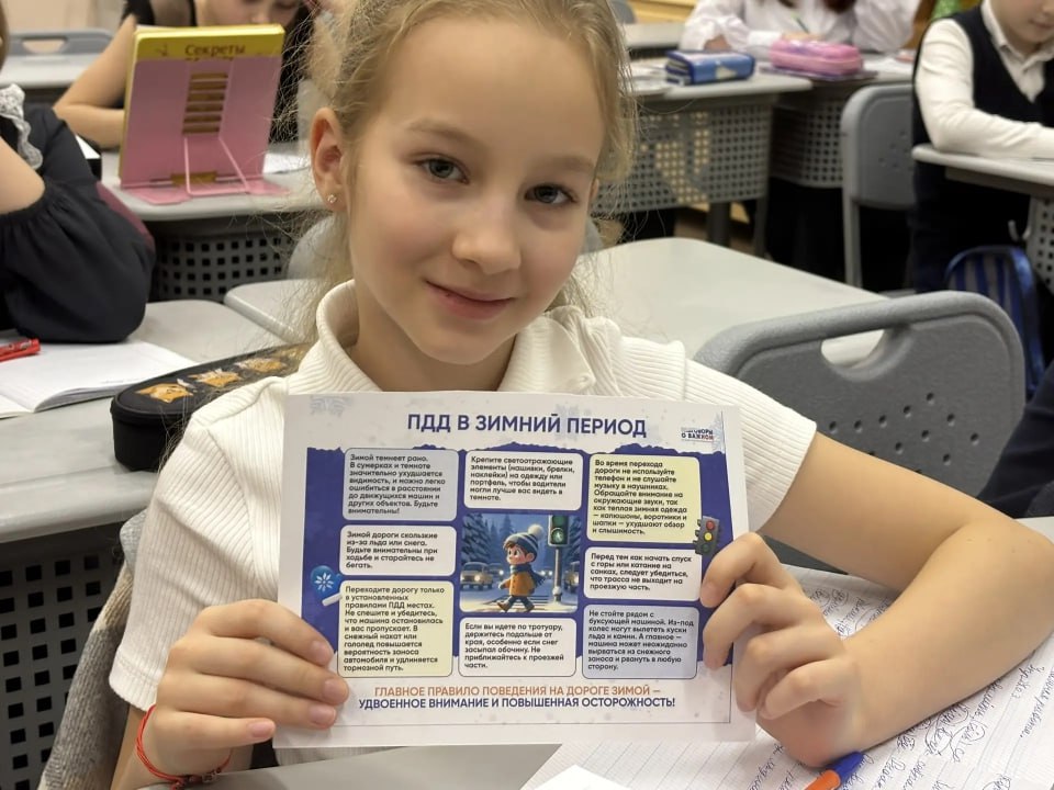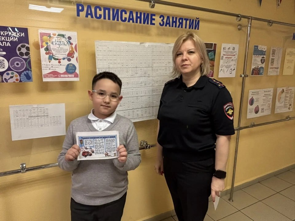Чтобы предотвратить дорожно-транспортные происшествия, полицейские рассказали школьникам о распространенных дорожных ловушках и призвали быть особенно внимательными в условиях ограниченной видимости. В конце мероприятия ребята получили памятки «ПДД в зимний период».