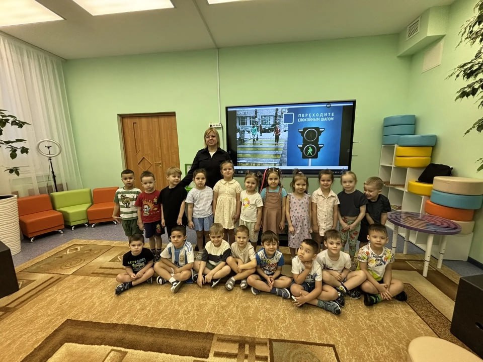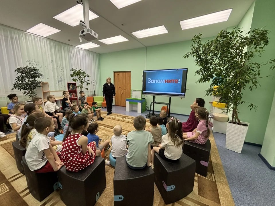 Сотрудники Госавтоинспекции рассказали детям о безопасном поведении рядом с дорогами и игровыми площадками, а также закрепили знания просмотром обучающего видеоролика «ПДД для детей». Особое внимание было уделено правилам перехода дороги, использованию световозвращающих элементов в темное время суток и важности пристегивания ремней безопасности в автомобиле.