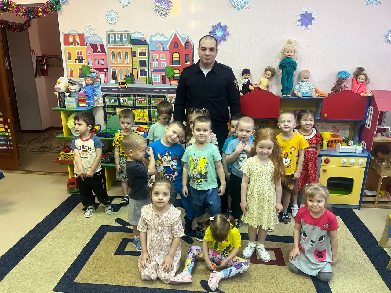 Сотрудники Госавтоинспекции провели с воспитанниками беседу о Правилах дорожного движения, напомнили о важности соблюдения правил при переходе дороги, ознакомили с различными видами пешеходных переходов и объяснили принцип действия световозвращающих элементов. Дети активно обсуждали с полицейскими различные ситуации, которые могут возникнуть при нарушении ПДД.