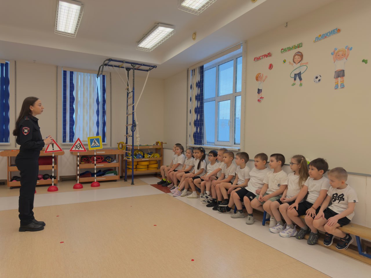 Сотрудники Госавтоинспекции провели познавательную викторину для воспитанников детского сада «Радуга». Мероприятие началось с повторения и обсуждения правил безопасности для юных пешеходов.