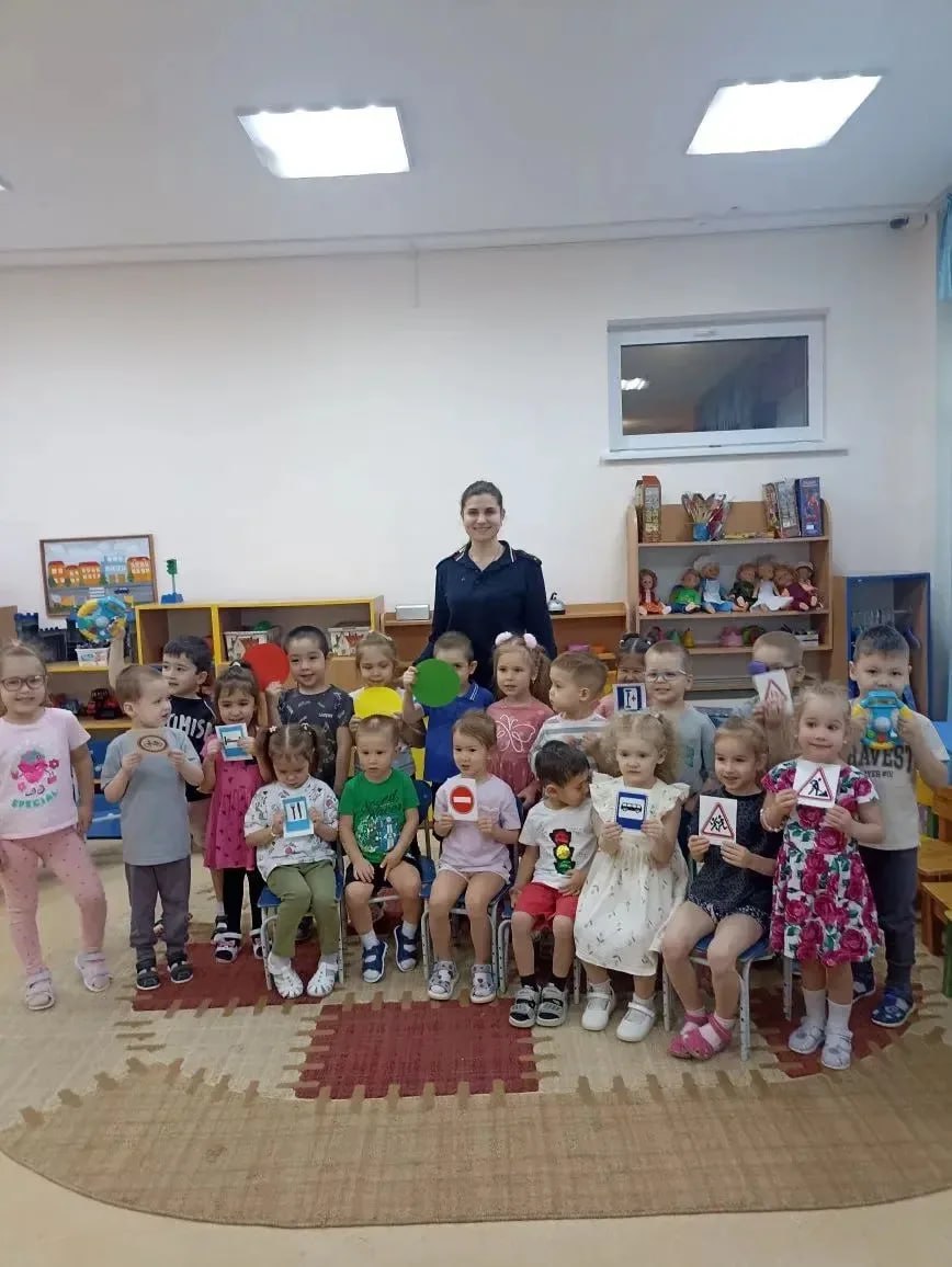 В течение недели инспекторы беседовали с воспитанниками детского сада «Кристаллик» о безопасном поведении на дороге. Ребята повторяли сигналы светофора, учились правильно переходить дорогу и определять безопасные места для этого. Кроме того, им напомнили о правилах поведения на детских площадках, расположенных рядом с проезжей частью.