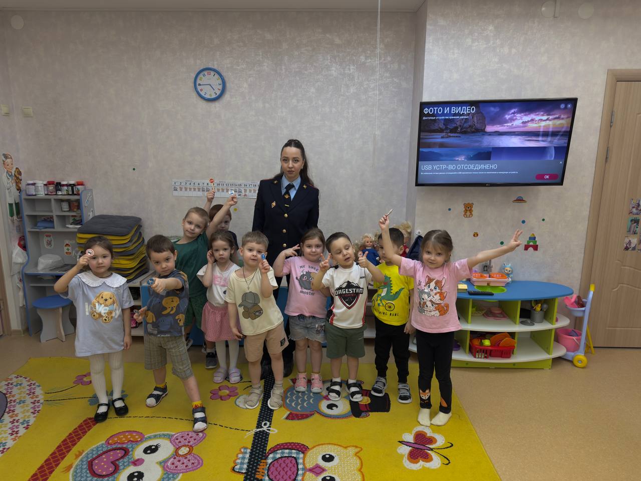 В завершение инспекторы показали детям познавательный мультфильм, чтобы закрепить полученные знания.