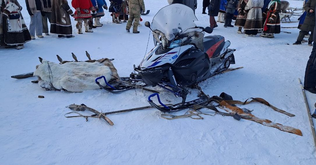 В Надыме снегоход наехал на людей на озере Янтарное.