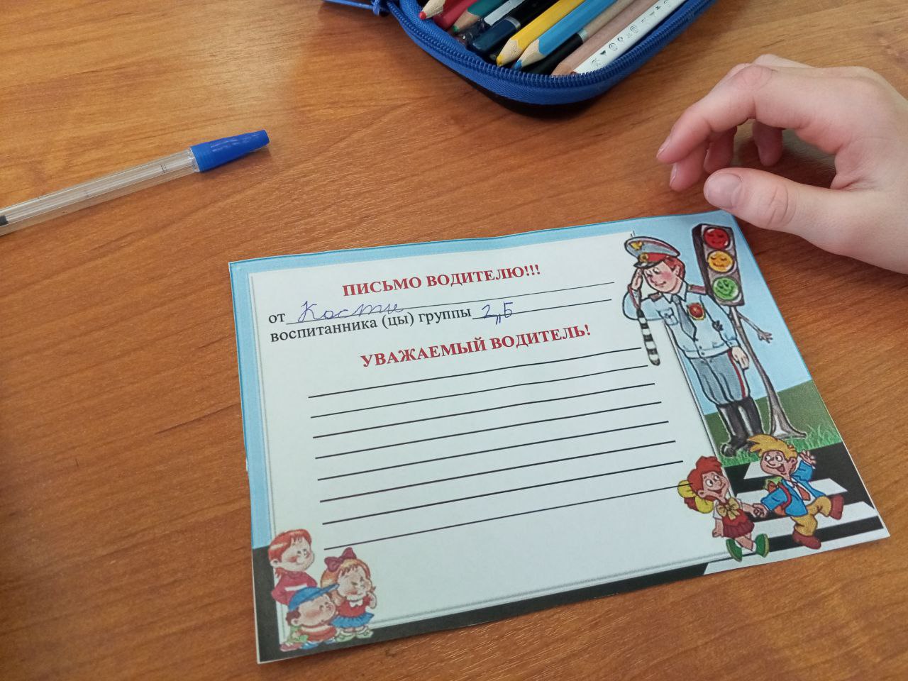 После теоретической части школьники с удовольствием приняли участие в акции «Письмо водителю». На красочных бланках они написали пожелания и поздравления с Днём защитника Отечества для водителей.