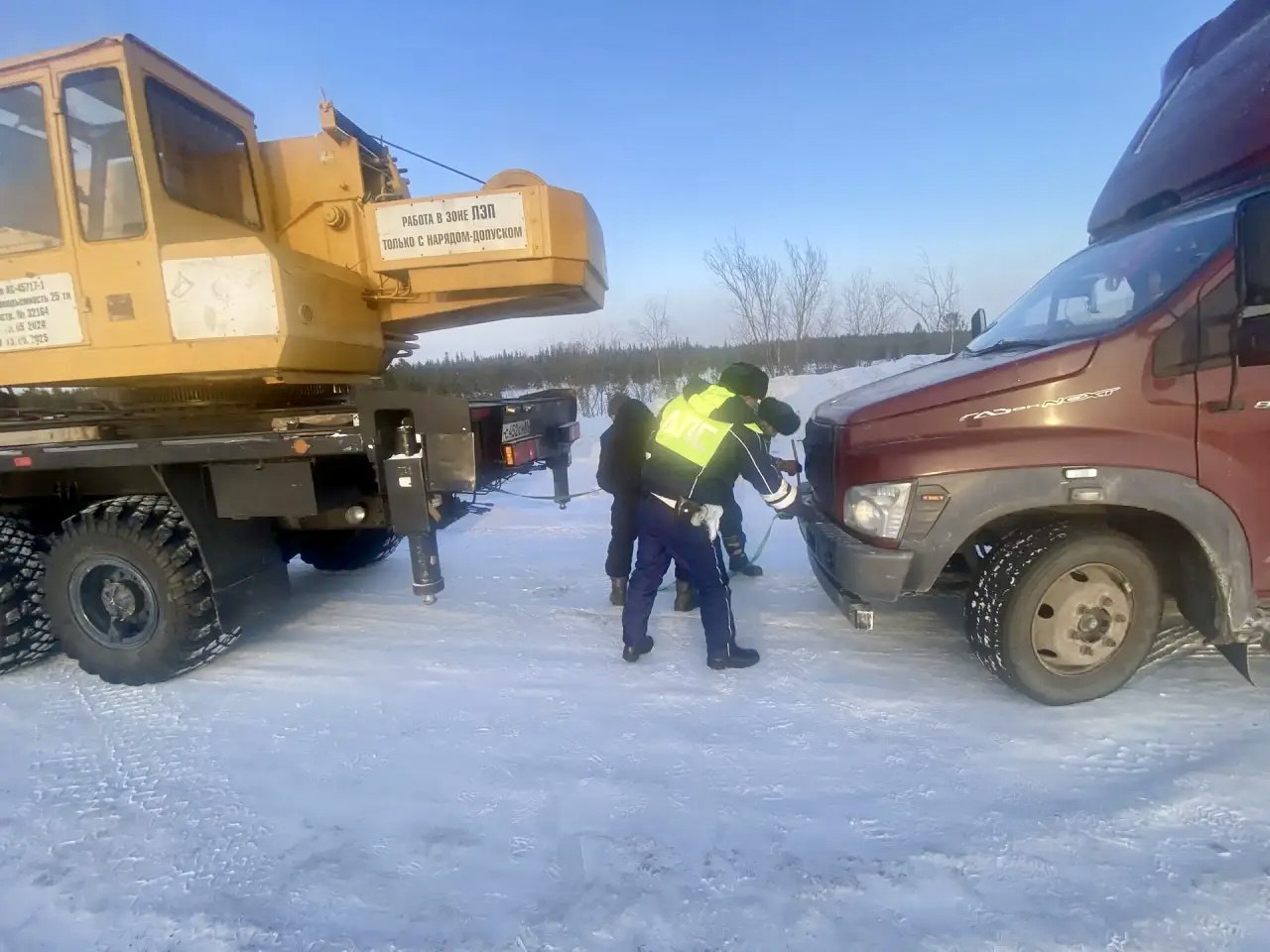 Экипаж ДПС в составе старшего лейтенанта полиции Бориса Уланова-Деликова и лейтенанта полиции Тимура Мамбетова оказал помощь водителю, оказавшемуся в сложной ситуации на 481-м километре автодороги «Сургут-Салехард».