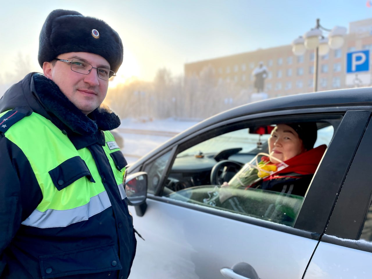 Сотрудники Госавтоинспекции Ямала поздравили женщин-водителей с Международным женским днем.