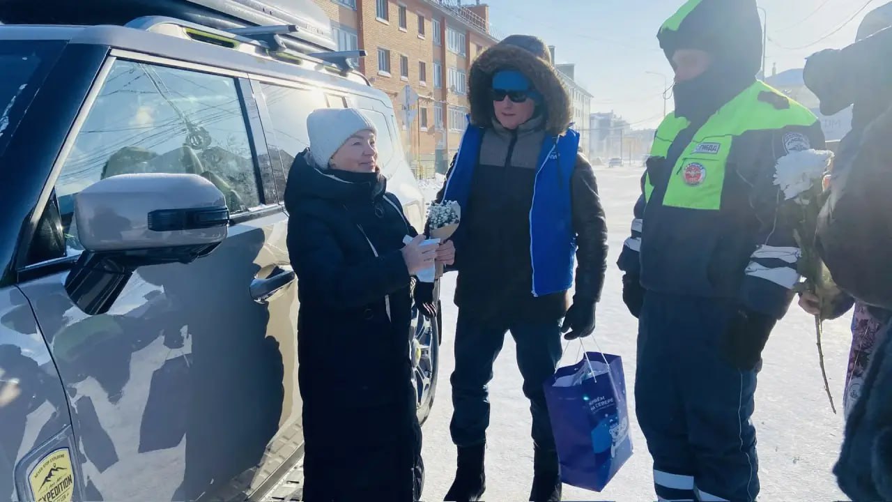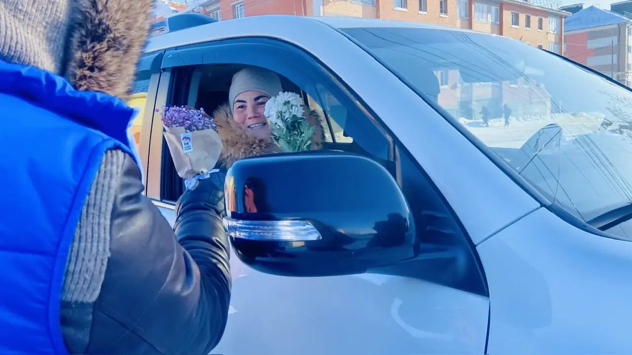 В преддверии Международного женского дня в поселке Тазовский прошла акция «Цветы для автоледи».