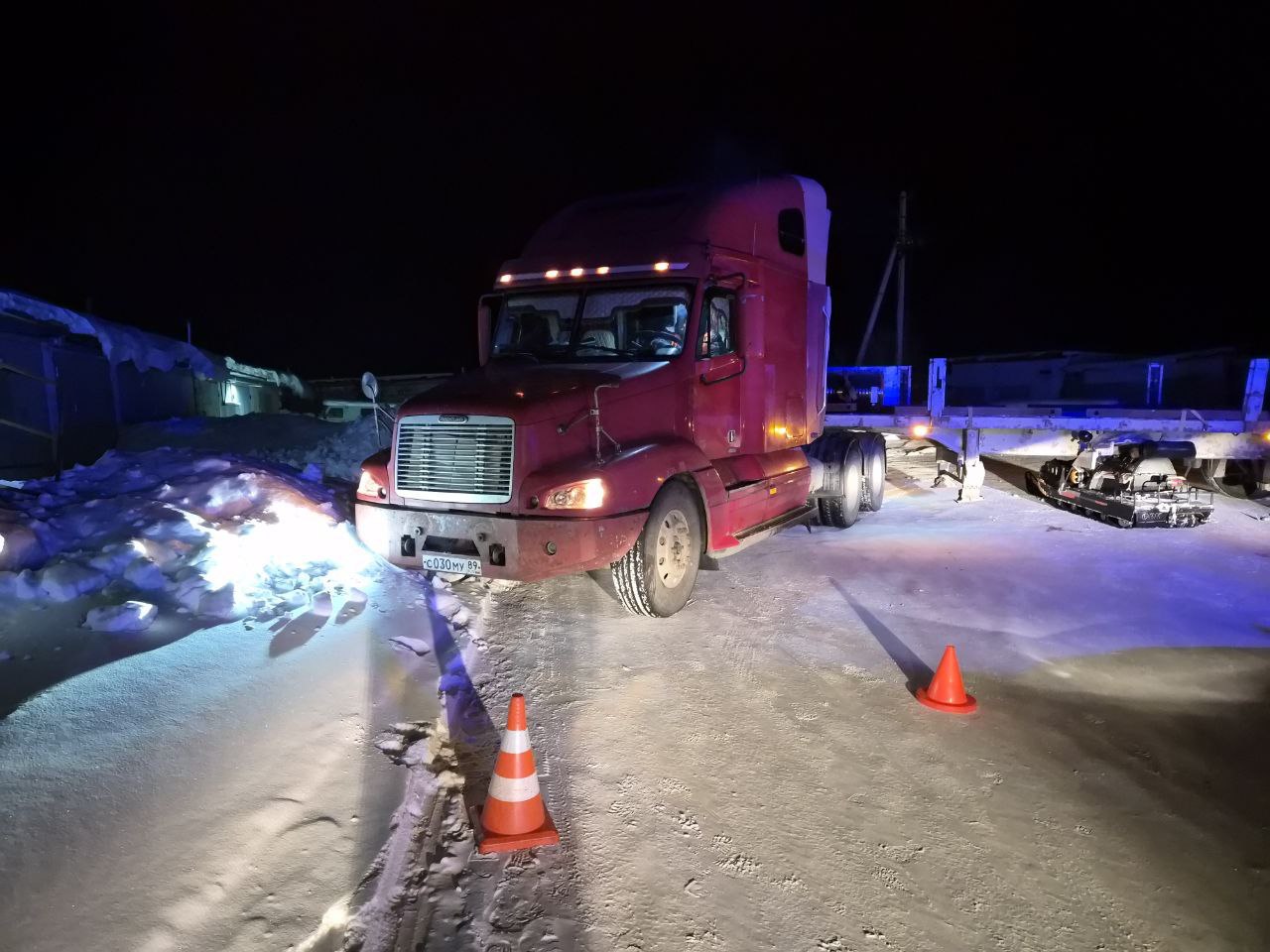11.03.2026 около 20 часов 15 минут, в районе д. 8 по ул. Кедровая, г. Надым, водитель снегохода «Буран Лидер» не справился с управлением допустил столкновение с а/м «FREIGHLINER». В результате ДТП водитель снегохода «Буран Лидер» госпитализирован.