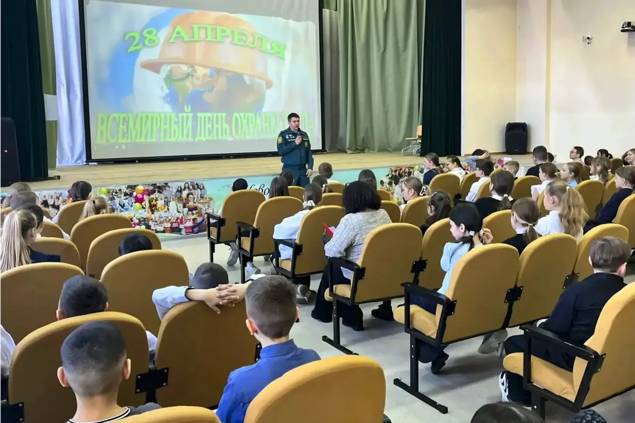 В международный день охраны труда командир отделения 6-й пожарно-спасательной части города Муравленко Юрий Волобуев провёл открытый урок для школьников.