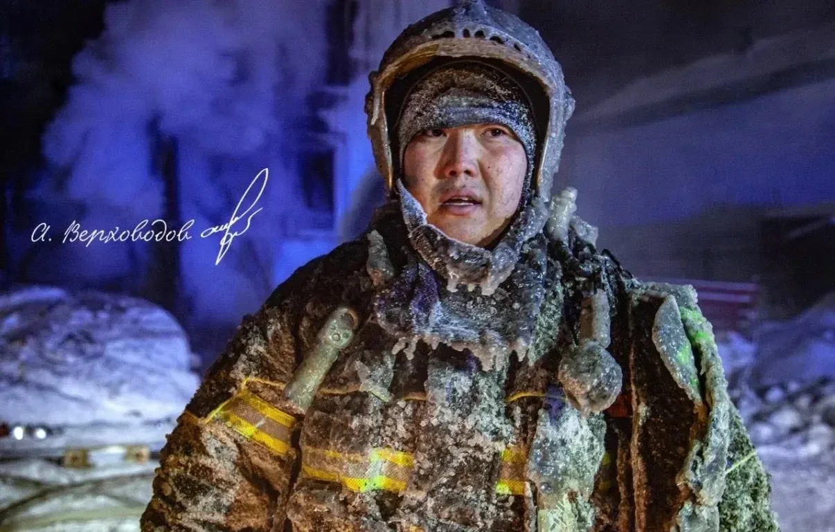 На фотографии — старший пожарный 1-й пожарно-спасательной части города Салехард Тологонов Жоодарбек Жыргалбекович.