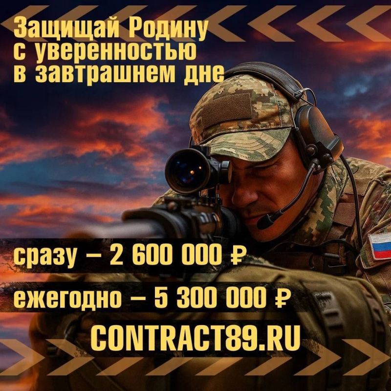 Вступившие в ряды ВС РФ получат достойное материальное обеспечение, включая существенные выплаты, а также полный пакет государственных гарантий.Подписавшим контракт гарантированы:• единовременно – 2,6 млн рублей• ежегодно – 5,3 млн рублей•...