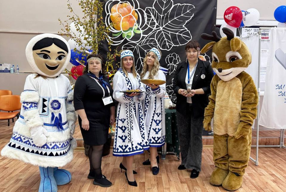 Сегодня на избирательном участке 1012 царит праздничная и тёплая атмосфера - с ямальским колоритом.Избирателей встречают в национальных костюмах и с традиционными ямальскими угощениями.А всей семьёй можно сфотографироваться с ростовыми куклами -...