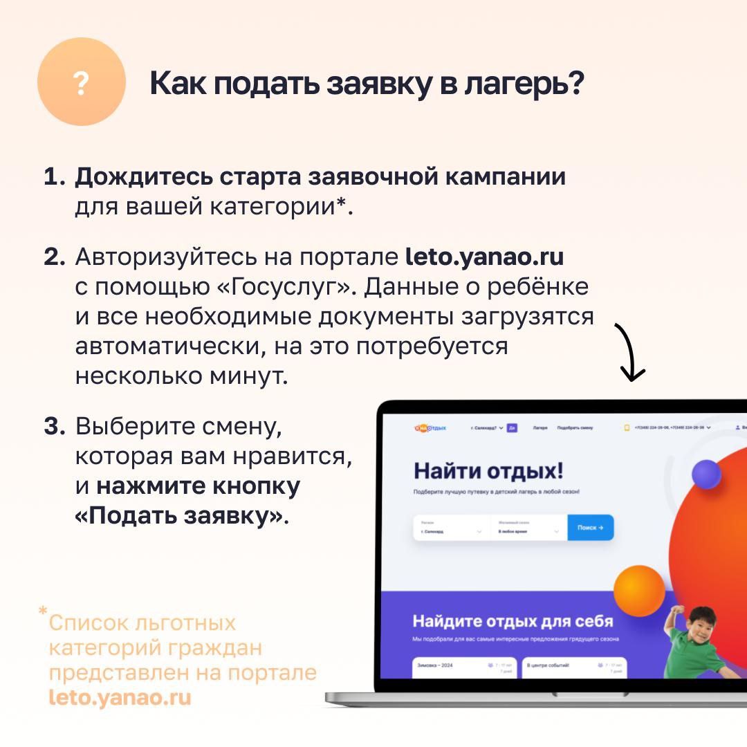 Больше информации о сменах и лагерях на портале детского отдыха leto.yanao.ru.