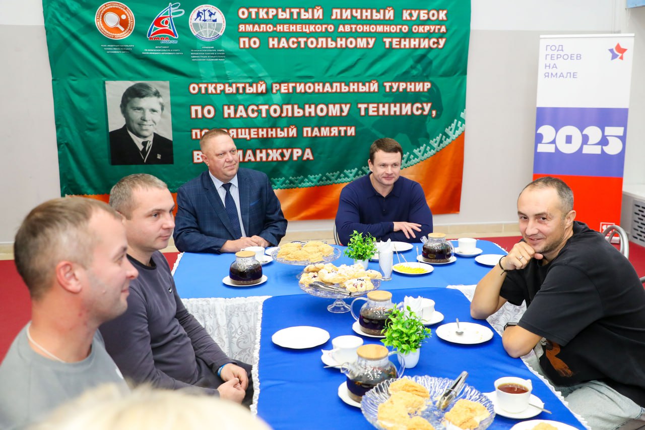 Накануне соревнований с тренерами из городов Губкинского, Нового Уренгоя, Муравленко, а также Надымского, Тазовского и Приуральского районов пообщался глава Надымского района Дмитрий Жаромских. На встрече обсудили перспективы развития настольного тенниса на Ямале и работу Федерации.