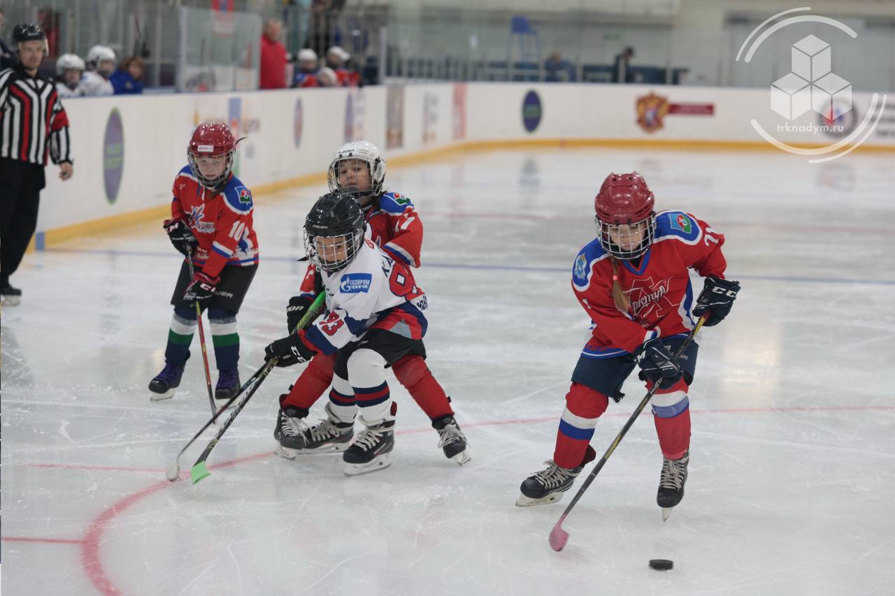 На льду — самые юные спортсмены округа. Команда «Артур» (Надым) встретилась с соперниками из Лабытнанги («Юность»), Нового Уренгоя («Газпром добыча Уренгой») и Салехарда («Ямал»).