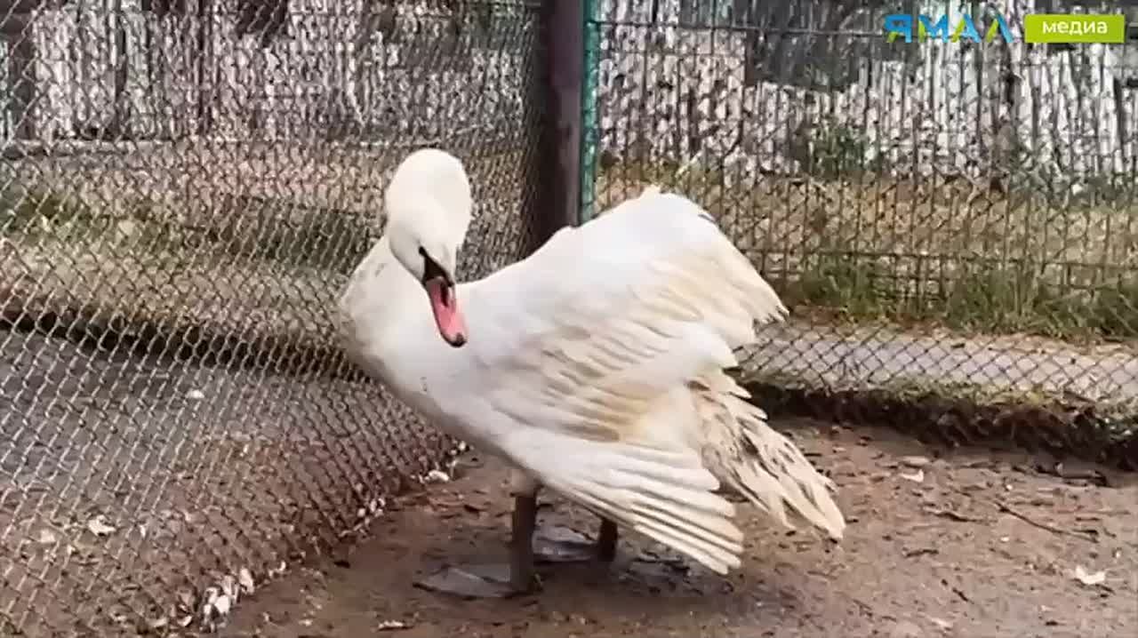 Лебедь, спасённый с замёрзшего озера у фактории Тадебе-Яха в Тазовском районе, теперь в безопасности. Птицу доставили в Новый Уренгой и временно разместили на Детской экологической станции.