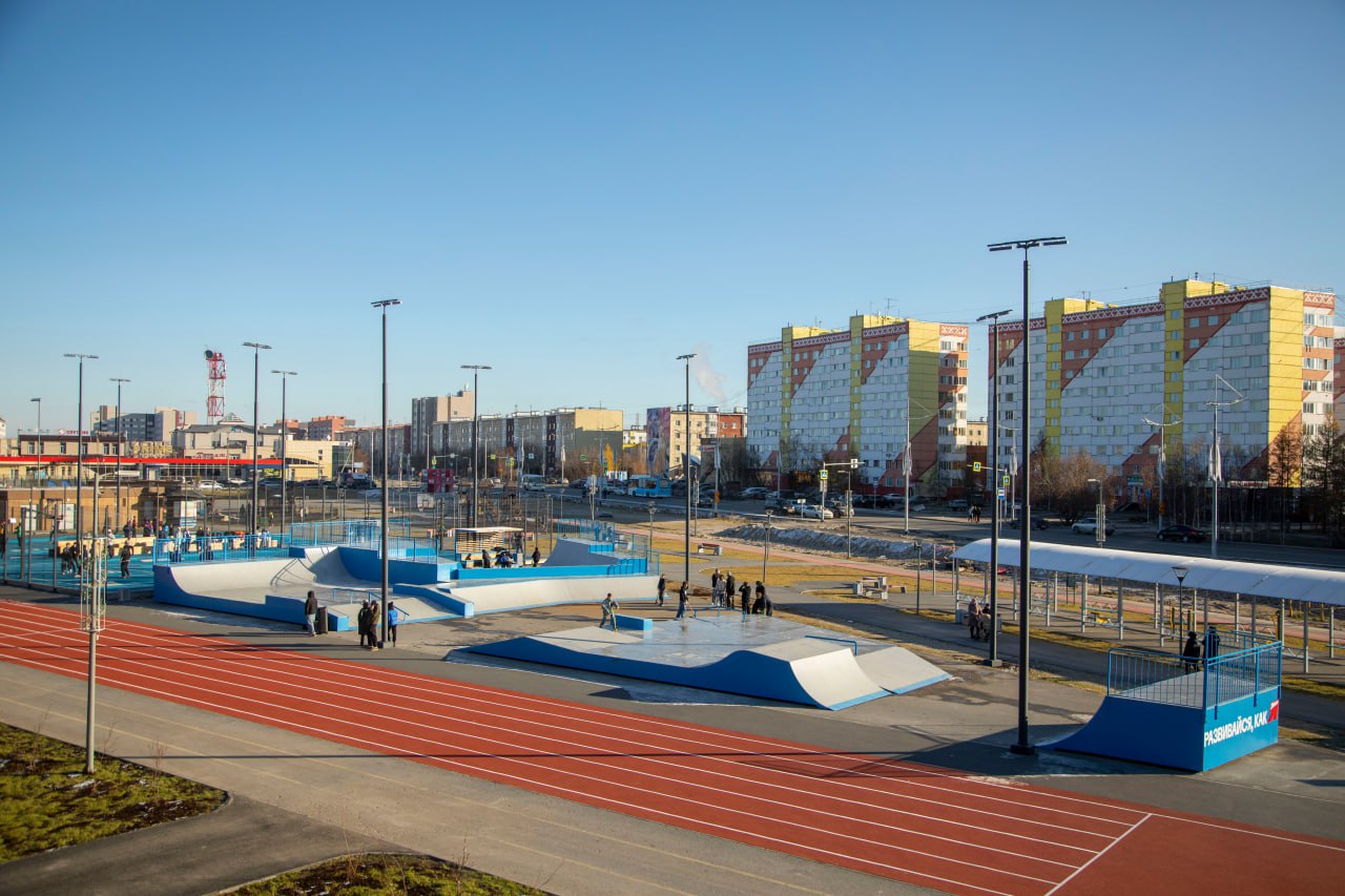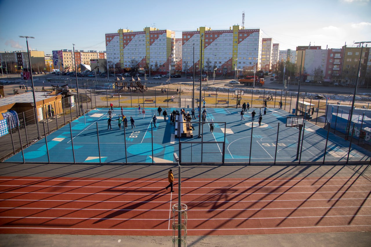 В Новом Уренгое завершена реновация «Виадука». Территорию спорткомплекса расширили до пролетов под мостом. Здесь появились пять тематических пространств: молодежное пространство для проведения форумов, зона для игры в падел-теннис, зона стритбола, зона кроссфита, зона игр на открытом воздухе (панна-футбола, текбола и других).