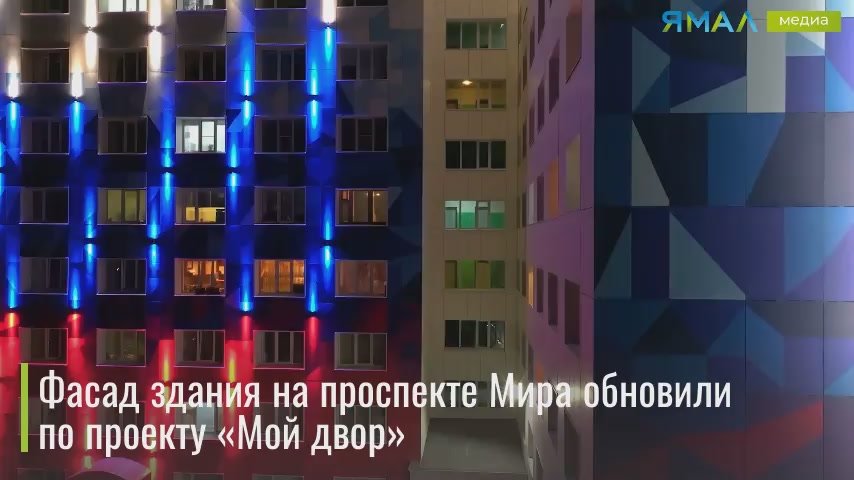 В Ноябрьске появился дом-флаг. Фасад здания на проспекте Мира обновили по проекту «Мой двор».