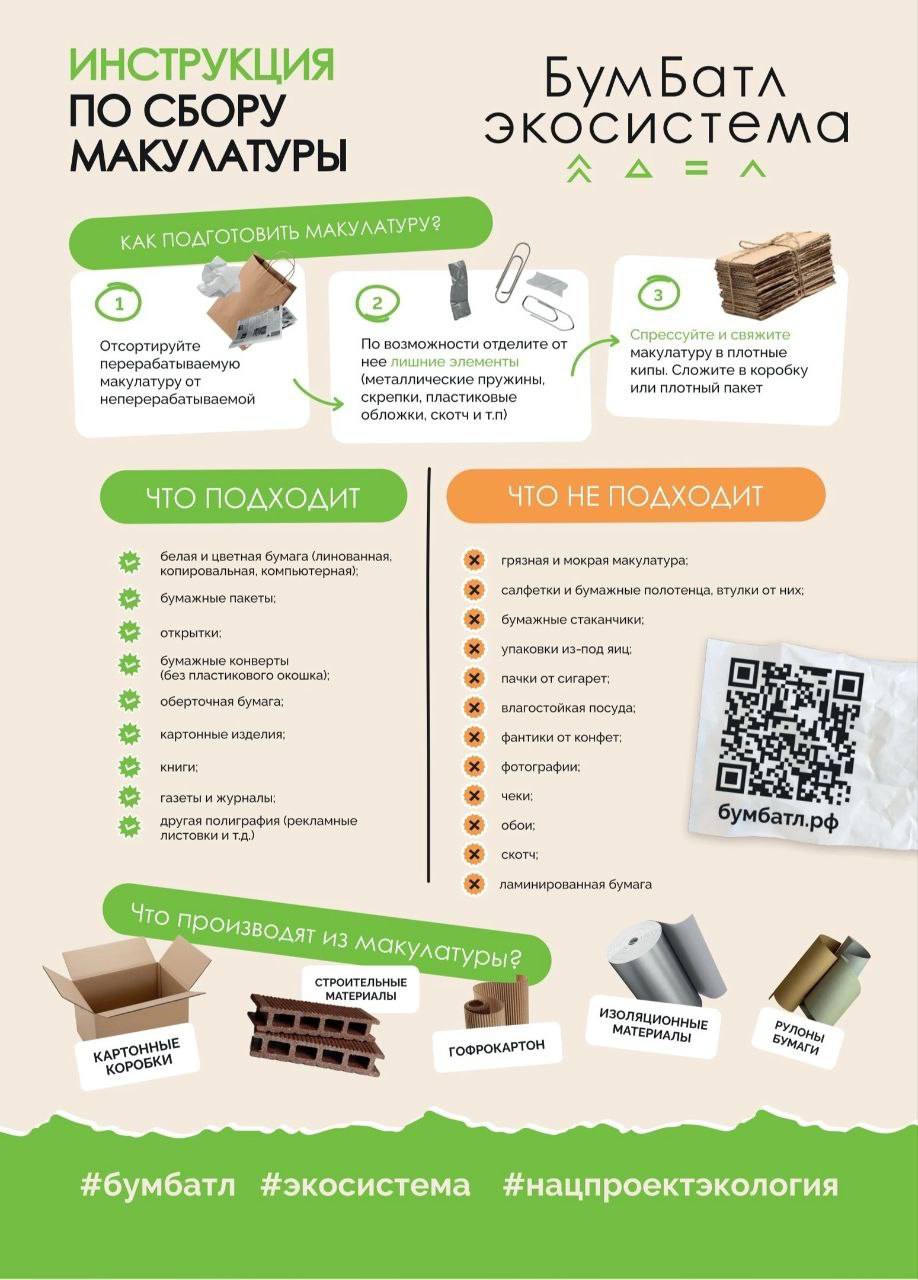 Давайте отметим его сданной макулатурой и вместе примем участие во всероссийской экологической акции «БумБатл». Эта акция направлена на сбор макулатуры в поддержку национального проекта «Экологическое благополучие», реализуемого по решению Президента.