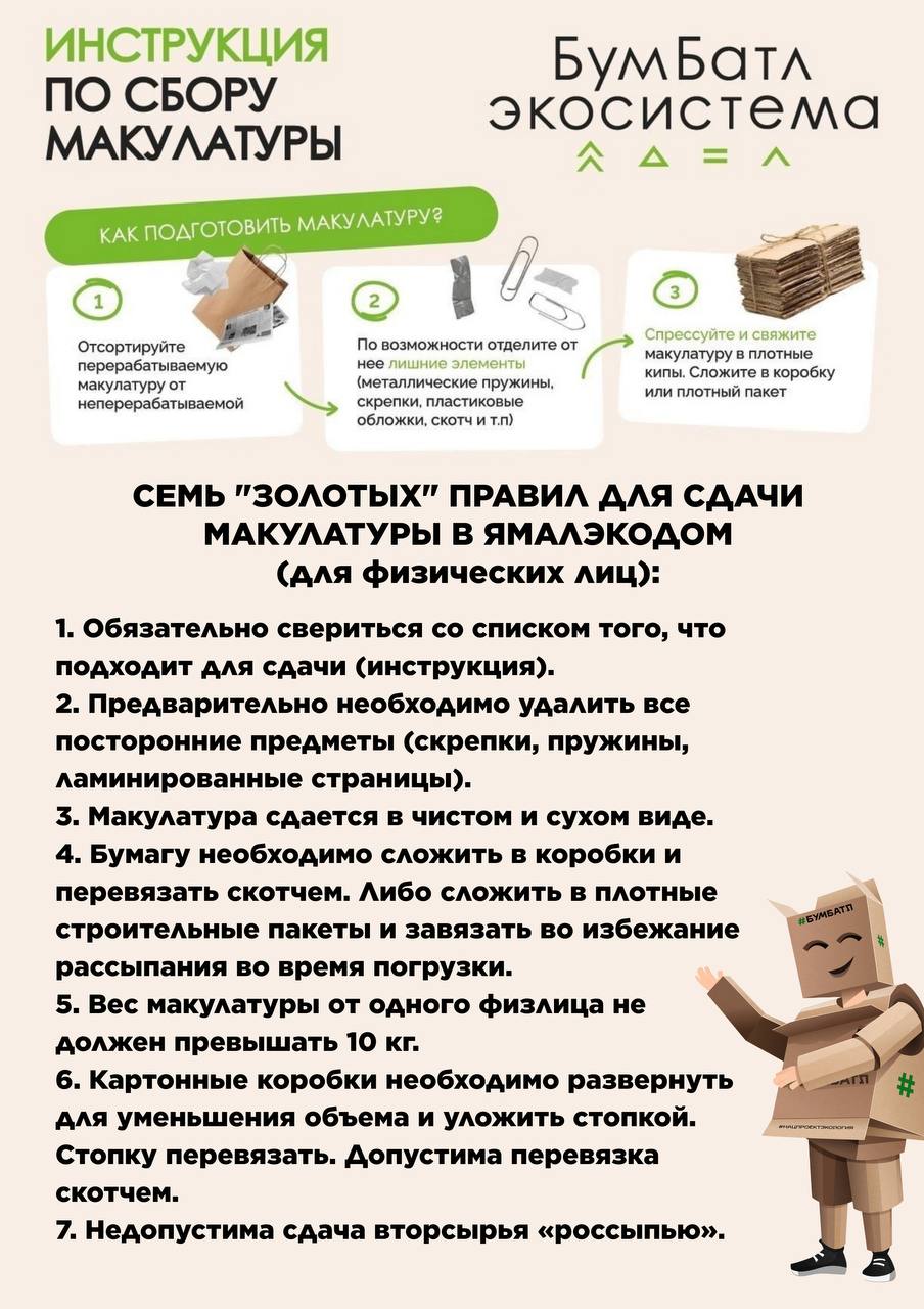 в «ЯмалЭкоДоме» примут максимум 10 кг макулатуры от одного человека. Если у вас есть большой объём, вы можете сдать его на Объездной, 14.