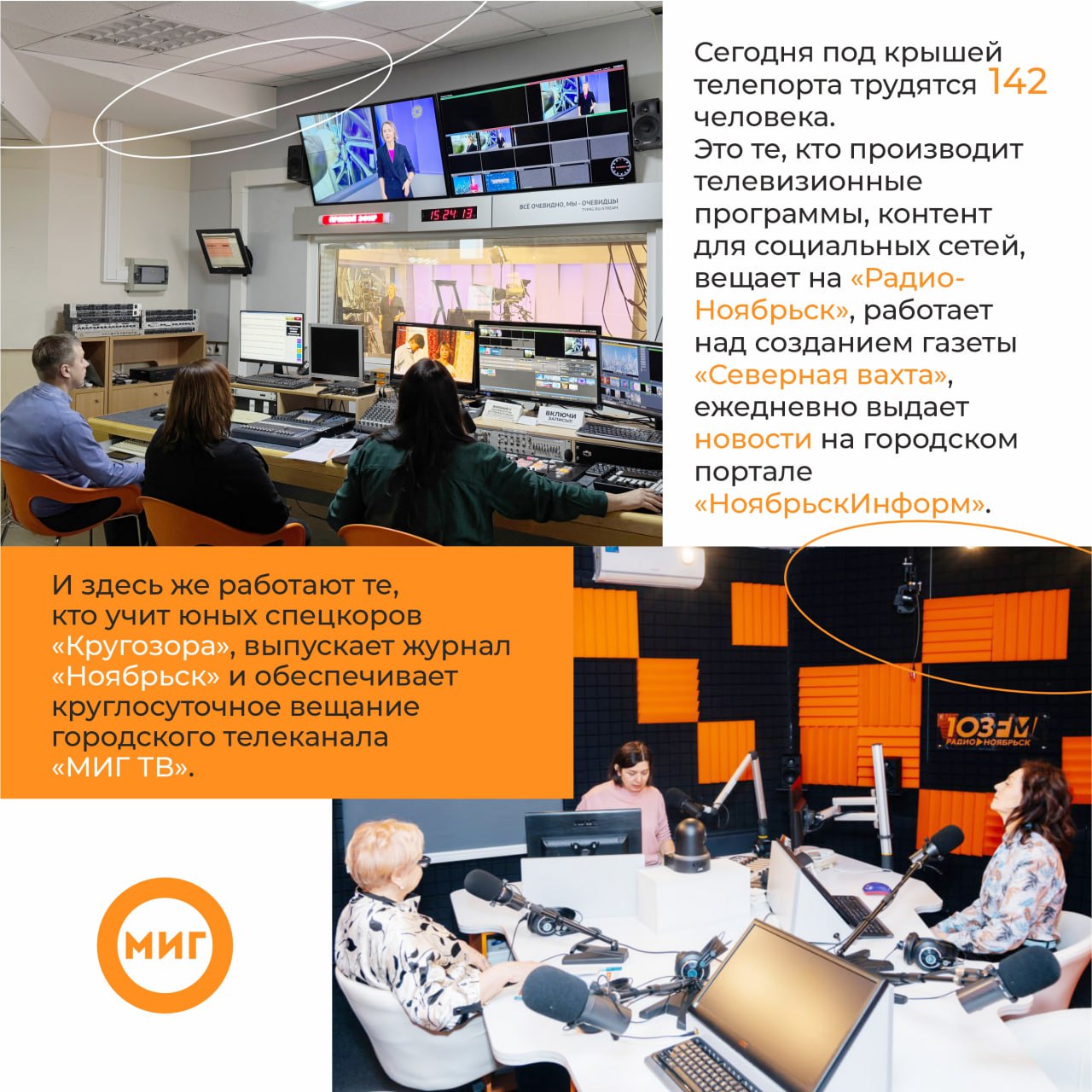 Ноябрьское телевизионное информационное агентство «МИГ» расположилось на проспекте Мира, 66. Подробнее о телепорте в рубрике «Ноябрьск в деталях».