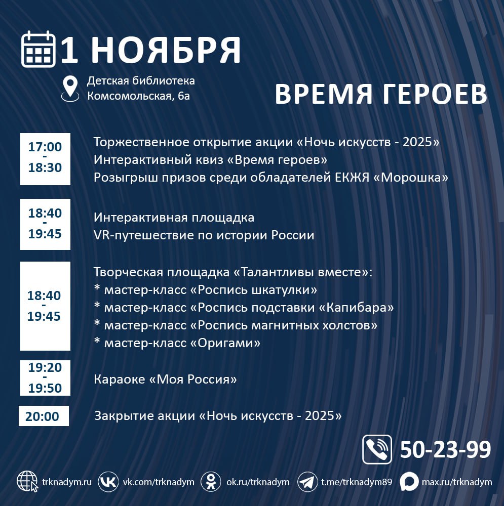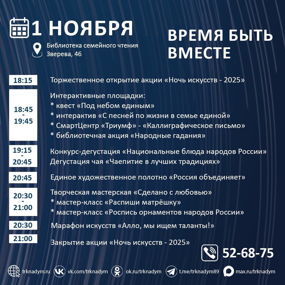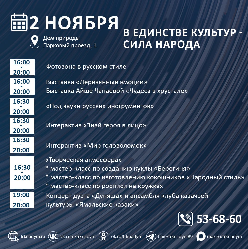 Событие пройдёт 1 и 2 ноября в пяти локациях Надыма.